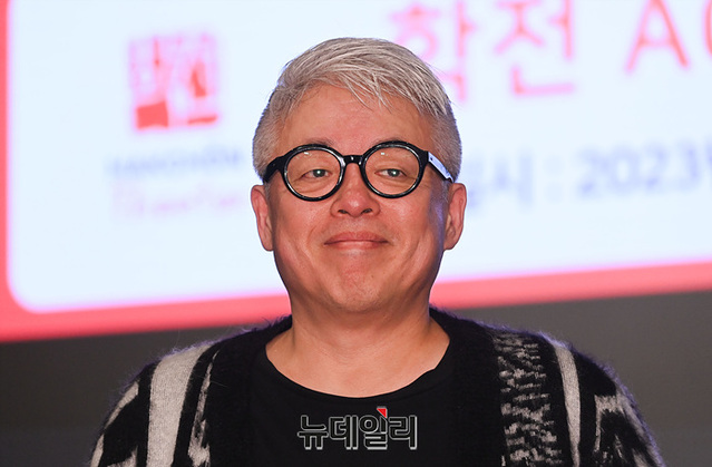작곡가 김형석이 5일 오후 서울 강서구 한국음악저작권협회에서 열린 '학전 어게인 프로젝트' 기자회견에서 포즈를 취하고 있다.