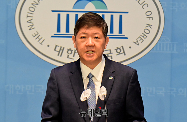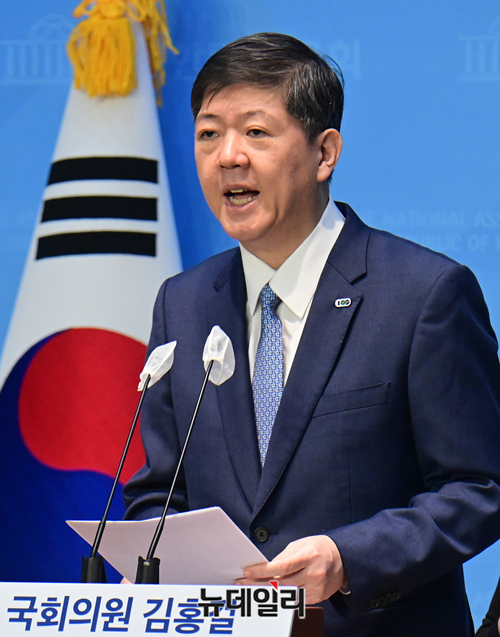 김홍걸 더불어민주당 의원이 6일 오전 국회 소통관에서 제22대 총선 서울 강서구갑 출마선언을 하고 있다.