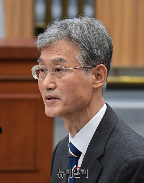 조희대 대법원장 후보자가 6일 오전 국회에서 열린 인사청문회에 출석해 의원들의 질문에 답하고 있다.