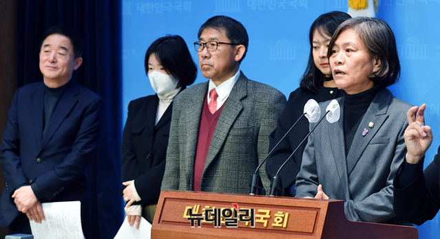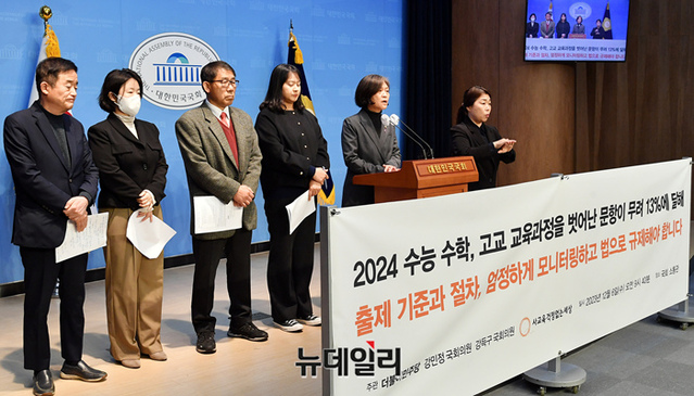 강민정 더불어민주당 의원이 6일 오전 국회 소통관에서 열린 2024학년도 수능 수학영역 문항 분석 결과 발표 기자회견에서 발언을 하고 있다.