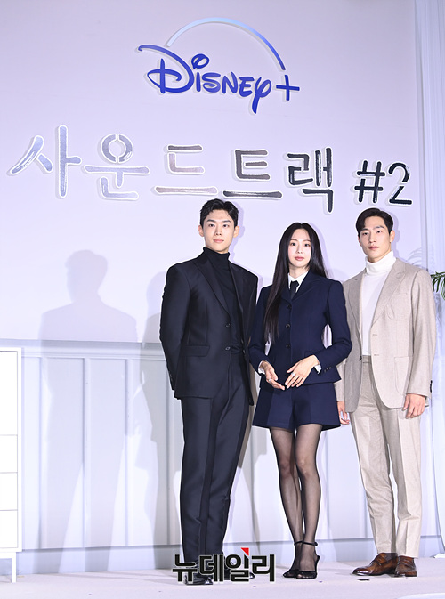 배우 손정혁, 금새록, 노상현이 6일 오후 서울 중구 앰배서더 서울 풀만 호텔에서 열린 디즈니+ 오리지널 '사운드트랙 #2(연출 김희원, 최정규)' 제작발표회에서 포즈를 취하고 있다.