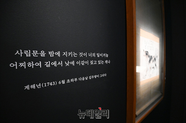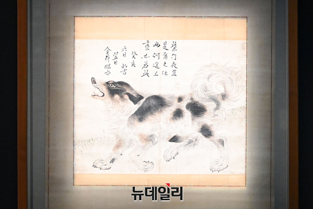 국립중앙박물관이 7일 오전 상설전시관 특별전시실에서 열린 영조 즉위 300주년 기념 특별전 '탕탕평평蕩蕩平平-글과 그림의 힘'에서 작품 '삽살개'를 일반에 최초 공개하고 있다.이번 전시는 국보 1건, 보물 11건, 세계기록유산 5건, 부산광역시 유형문화재 1건 등 18세기 궁중서화의 화려한 품격과 장중함을 대표하는 54건 88점을 선보인다.전시 개막을 기념해 8일부터 17일까지 무료 관람 가능하다. 전시관람은 2024년 3월 10일까지 진행한다.