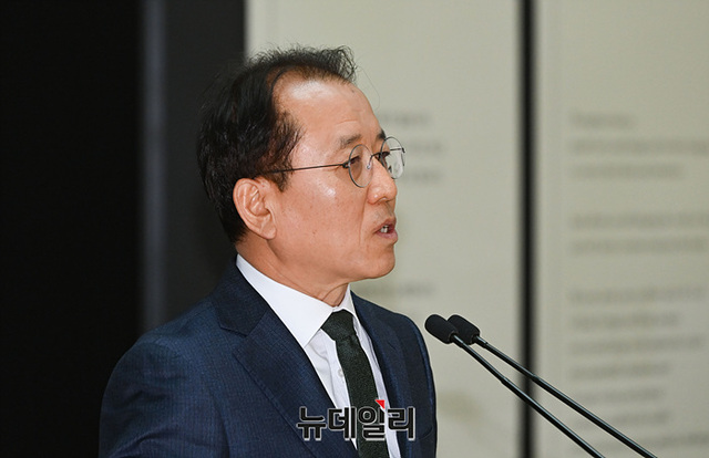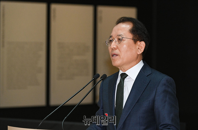 윤성용 국립중앙박물관 관장이 7일 오전 상설전시관 특별전시실에서 열린 '영조 즉위 300주년 기념 특별전 탕탕평평蕩蕩平平-글과 그림의 힘' 언론공개회에서 인사말을 하고 있다.이번 전시는 국보 1건, 보물 11건, 세계기록유산 5건, 부산광역시 유형문화재 1건 등 18세기 궁중서화의 화려한 품격과 장중함을 대표하는 54건 88점을 선보인다.전시 개막을 기념해 8일부터 17일까지 무료 관람 가능하다. 전시관람은 2024년 3월 10일까지 진행한다.