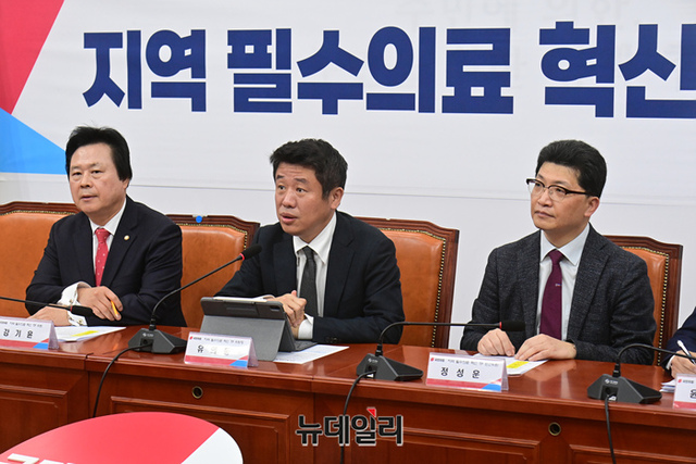 유의동 지역 필수의료 혁신 TF 위원장이 7일 국회에서 열린 '지역 필수의료 혁신 TF 2차 회의'에서 발언을 하고 있다.