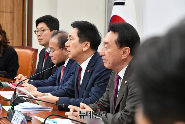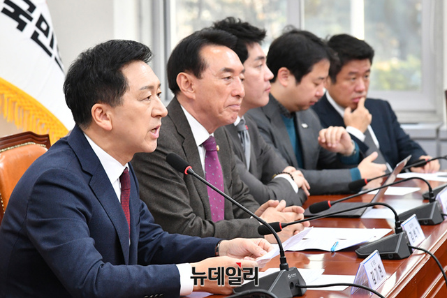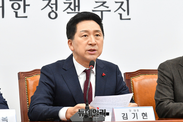 김기현 국민의힘 대표가 7일 오전 국회에서 열린 최고위원회의에서 모두발언을 하고 있다.