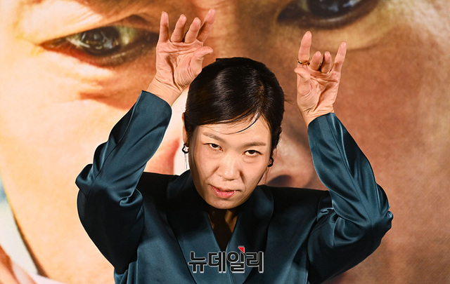 배우 염혜란이 7일 오전 서울 광진구 롯데시네마 건대입구에서 열린 '시민덕희(감독 박영주)' 제작보고회에서 포즈를 취하고 있다.