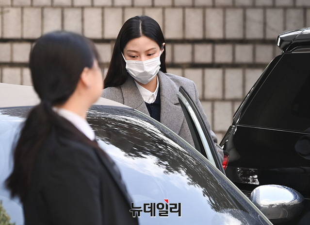 입시 비리 의혹을 받는 조국 전 법무부 장관 딸 조민이 8일 오후 서울 서초구 중앙지법에서 열린 '위계공무집행방해등' 공판에 출석하고 있다.