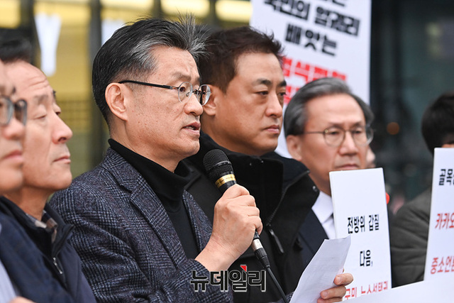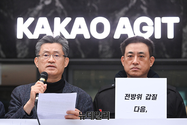 이의춘 한국인터넷신문협회 회장이 11일 오전 경기 성남시 카카오판교아지트에 항의방문해 입장문을 발표하고 있다.포털사이트 다음(Daum)이 11월 22일부터 뉴스 검색 결과 '기본값'을 콘텐츠제휴사(CP)로 변경했다. 기존 뉴스 검색 시 전체 언론사(약 1200여개)의 기사가 노출됐지만 앞으로는 다음에 제휴된 CP사(약 100개)들의 기사만 보이게 된다.인터넷신문협회와 비상대책위원들은 1,000여개 검색제휴 언론사를 차별한것에 대해 6일 공문을 보내 카카오 김범수 경영쇄신위원장과 면담을 요청했으나 공식 회신이 오지 않아 항의방문이 이루어졌다.이날 항의방문에서 '전방위 갑질 카카오, 국민 뉴스선택권 막지마라' '지역언론 언로차단 뉴스검색 정책 즉시 철회하라' 등의 문구가 적힌 피켓 시위를 진행했다.