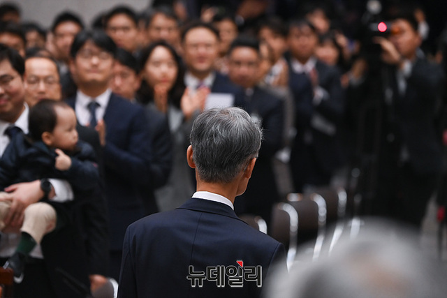 조희대 신임 대법원장이 11일 오후 서울 서초구 대법원에서 열린 취임식에 참석하고 있다.