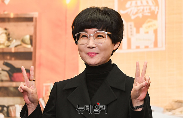 방송인 팽현숙이 13일 오전 서울 마포구 스탠포드 호텔에서 열린 MBN 신규 예능 '깐죽포차' 제작발표회에서 포즈를 취하고 있다.