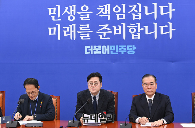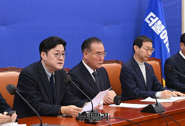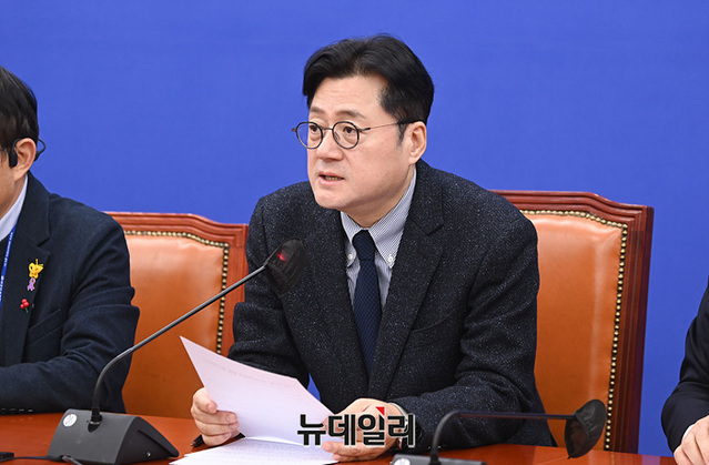 홍익표 더불어민주당 원내대표가 14일 오전 국회에서 열린 정책조정회의에서 모두발언을 하고 있다.