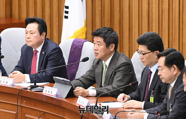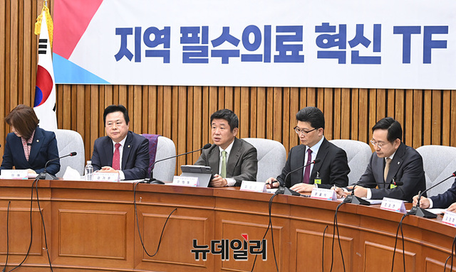 유의동 위원장이 14일 국회에서 열린 '지역 필수의료 혁신 TF 4차 회의'에서 모두발언을 하고 있다.