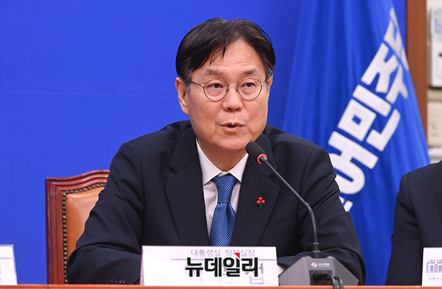 이관섭 대통령실 정책실장이 14일 오후 국회에서 이재명 더불어민주당 대표를 접견하고 모두발언을 하고 있다.