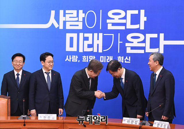[포토] 이재명 대표와 악수하는 이관섭 대통령실 정책실장