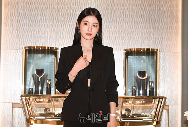 배우 신예은이 15일 오전 서울 서초구 신세계백화점 강남점에서 열린 주얼리 브랜드 '그라프(GRAFF)' 살롱 오픈 기념 포토월에서 포즈를 취하고 있다.