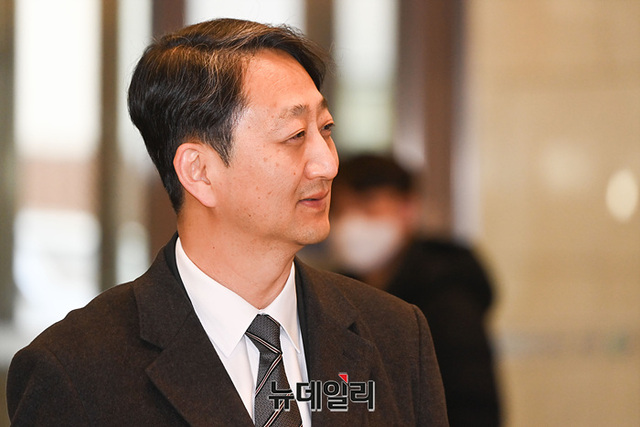 안덕근 산업통상자원부 장관 후보자가 18일 오전 서울 중구 대한상공회의소에 마련된 인사청문회 준비사무실로 출근하고 있다.