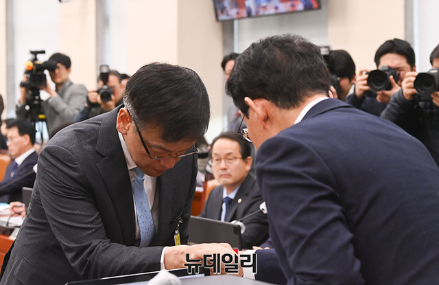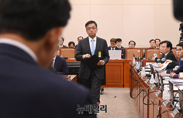 [포토] 증인선서문 제출하는 최상목 부총리 겸 기재부 장관 후보자