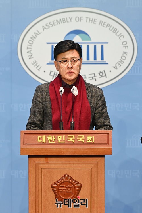 이명수 국민의힘 의원이 19일 오후 국회 소통관에서 '국립경찰병원 아산건립 예타면제 촉구' 기자회견을 하고 있다.