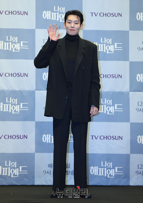배우 이기택이 21일 오전 서울 마포구 스탠포드 호텔에서 열린 TV CHOSUN 새 미니시리즈 ‘나의 해피엔드(극본 백선희, 연출 조수원)' 제작보고회에서 포즈를 취하고 있다.