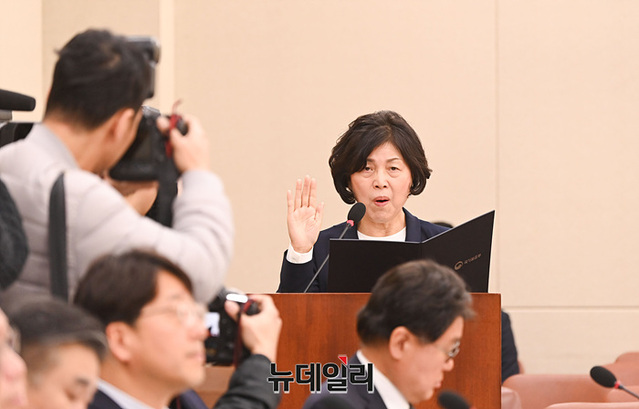 [포토] 인사청문회 증인선서하는 강정애 보훈부 장관 후보자