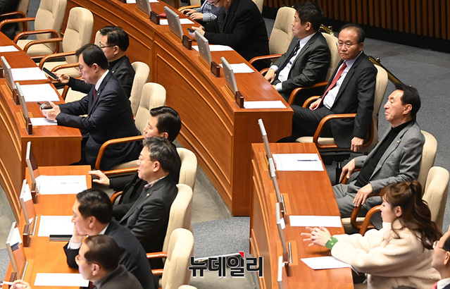 [포토] 김기현 응시하는 윤재옥 당대표 권한대행