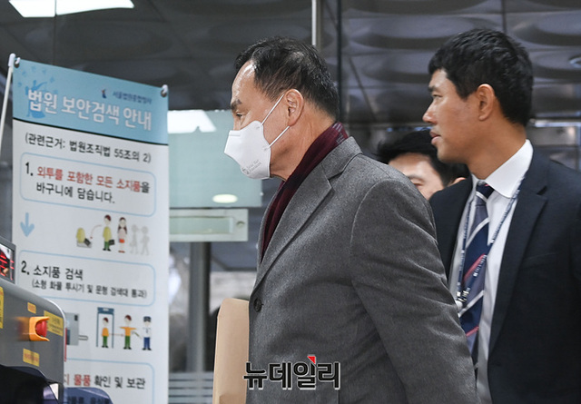 '백현동 수사무마 금품수수' 의혹을 받는 고검장 출신 임정혁 변호사가 22일 오전 서울 서초구 중앙지법에서 열린 영장실질심사(구속 전 피의자 심문)를 받기 위해 법정으로 향하고 있다.