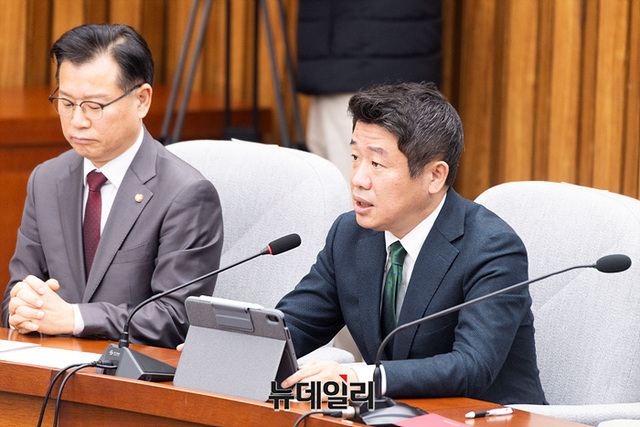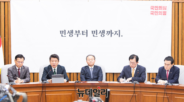 유의동 국민의힘 정책위의장이 26일 오전 국회에서 열린 원내대책회의에서 발언하고 있다.