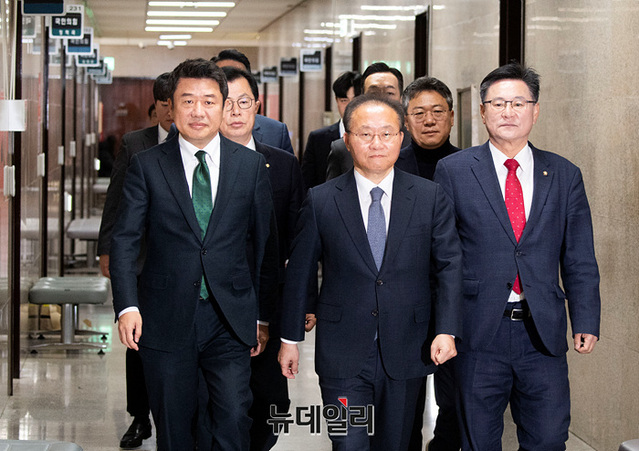 [포토] 제10차 전국위원회 참석하는 유의동·이만희·윤재옥·이헌승
