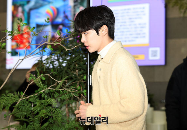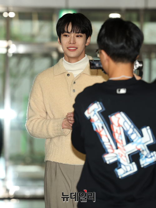행운버거 광고 모델인 NCT 도영이 27일 오전 서울 마포구 맥도날드 상암DMC에서 열린 출시행사에 입장하고 있다.