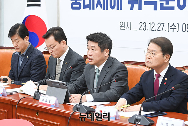 [포토] 중대재해 지원대책 당정협의, 인사말하는 유의동 정책위의장