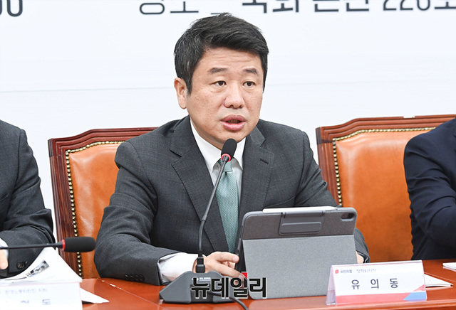 유의동 국민의힘 정책위의장이 27일 오전 국회에서 열린 '중대재해 취약분야 지원대책 관련 당정협의'에서 인사말을 하고 있다.
