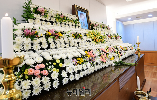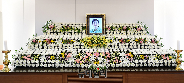 배우 이선균의 빈소가 27일 서울 종로구 서울대학교병원 장례식장 1호에 마련됐다. 발인은 29일, 장지는 전북 부안군 선영이다. (사진=공동취재단)