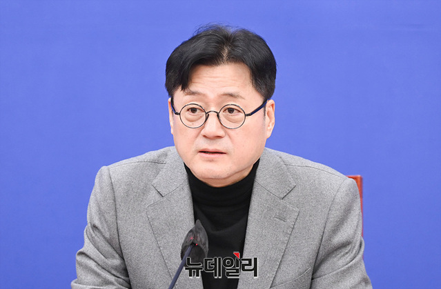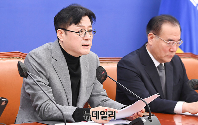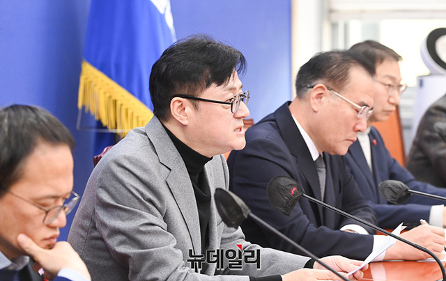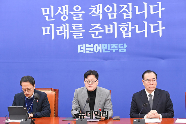홍익표 더불어민주당 원내대표가 28일 오전 국회에서 열린 정책조정회의에서 모두발언을 하고 있다.