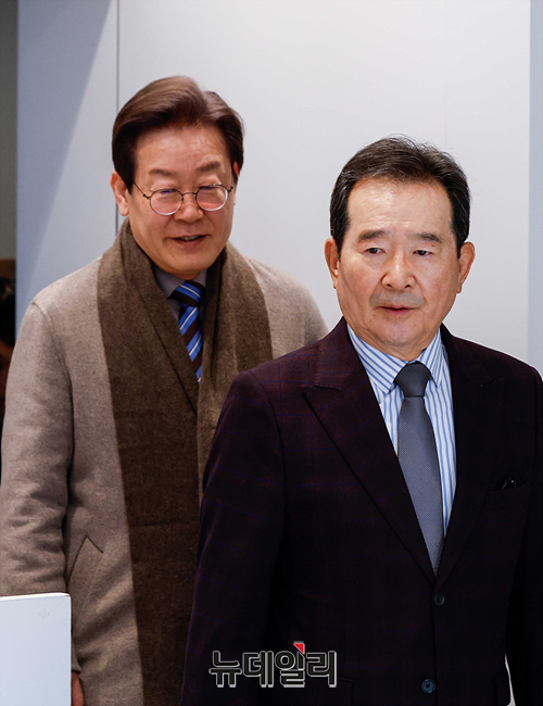 이재명 더불어민주당 대표와 정세균 전 국무총리가 회동을 하기 위해 28일 서울 종로구 한 음식점으로 들어서고 있다. (사진=공동취재단)