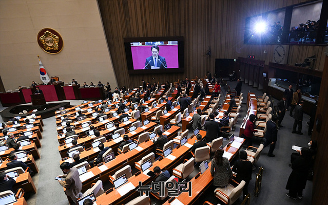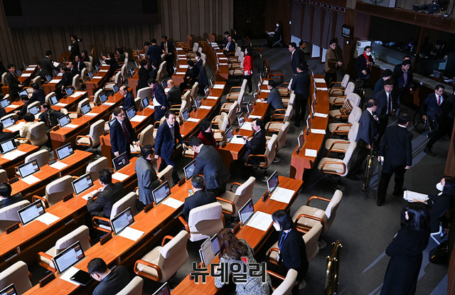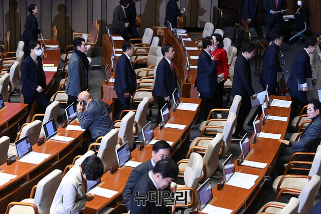 [포토] 본회의장 나서는 국민의힘 의원들