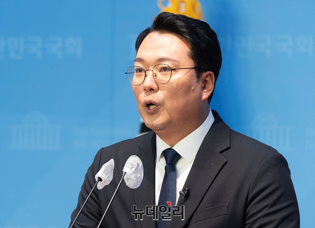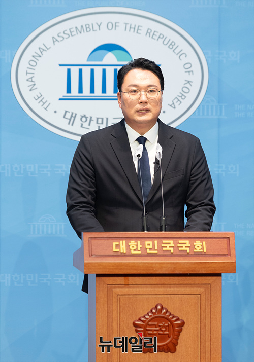 천하람 순천갑 국민의힘 당협위원장이 29일 오전 국회 소통관에서 국민의힘 탈당과 개혁신당 합류를 발표하고 있다.