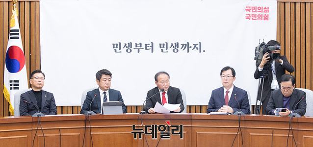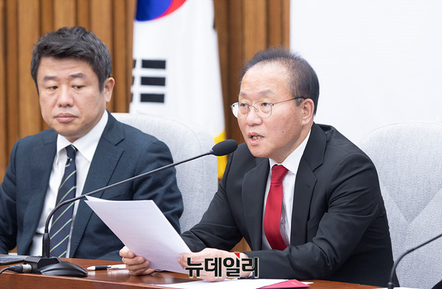 윤재옥 국민의힘 원내대표가 29일 오전 국회에서 열린 원내대책회의에서 모두발언을 하고 있다.