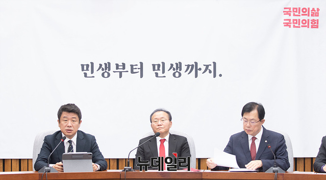 유의동 정책위의장이 29일 오전 국회에서 열린 원내대책회의에서 발언하고 있다.