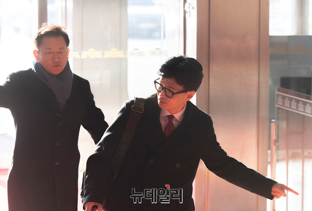 한동훈 국민의힘 비상대책위원장이 29일 오전 국회로 출근하고 있다.