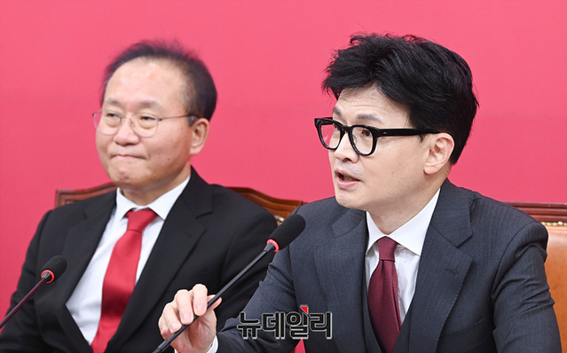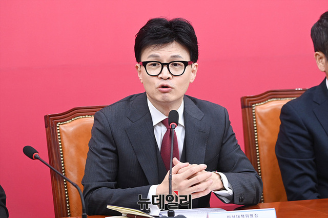 한동훈 국민의힘 비상대책위원장이 29일 오후 국회에서 열린 제1차 비상대책위원회의에서 발언하고 있다.