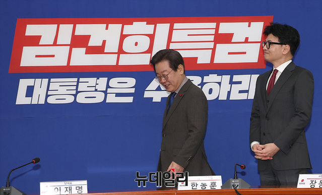 한동훈 국민의힘 비상대책위원장이 29일 오후 국회에서 이재명 더불어민주당 대표와 함께 당대표실로 입장하고 있다. (사진=공동취재단)