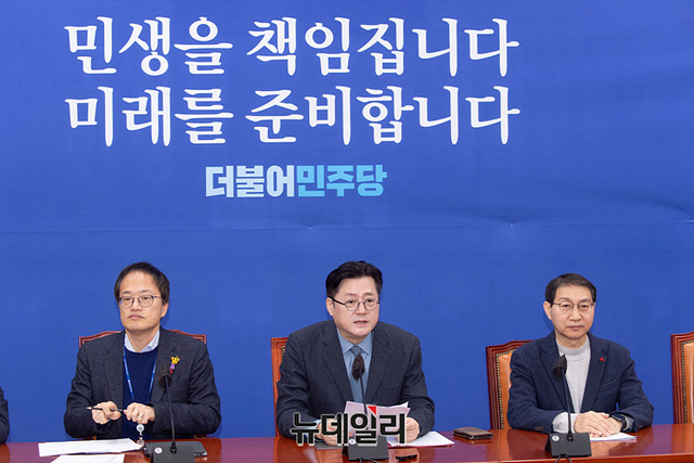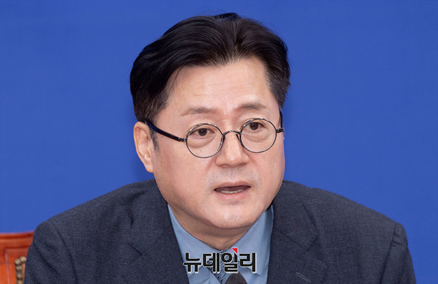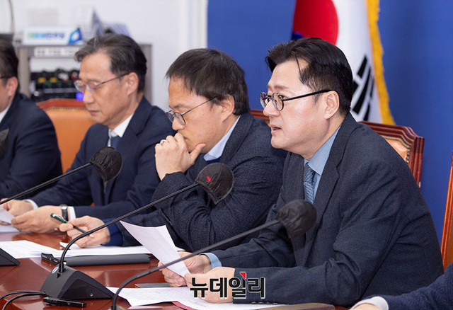 홍익표 더불어민주당 원내대표가 2일 오전 국회에서 열린 원내대책회의에서 모두발언을 하고 있다.