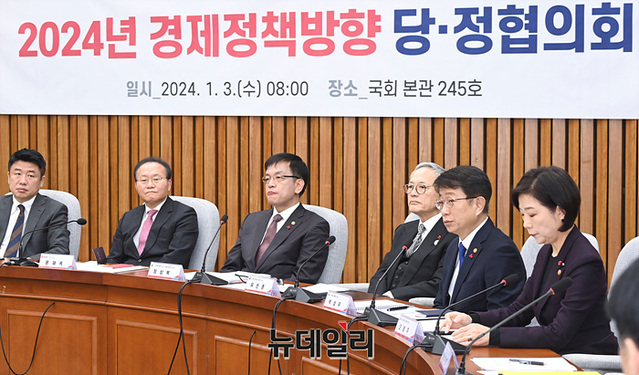 박상우 국토교통부 장관이 3일 오전 국회에서 열린 2024년 경제정책방향 당·정협의회에서 인사말을 하고 있다.