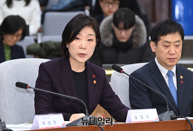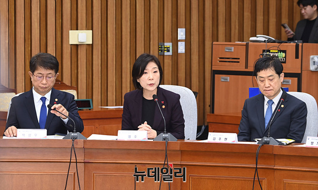 오영주 중소벤처기업부 장관이 3일 오전 국회에서 열린 2024년 경제정책방향 당·정협의회에서 인사말을 하고 있다.