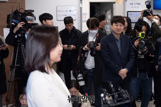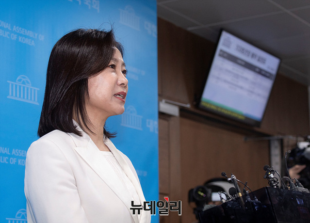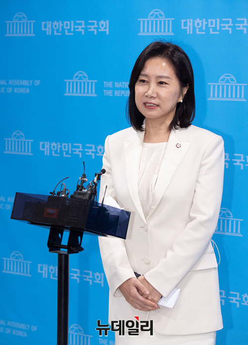 허은아 국민의힘 의원이 3일 오전 국회 소통관에서 열린 국민의힘 탈당 및 개혁신당 합류 선언 기자회견을 마치고 취재진의 질문에 답하고 있다.