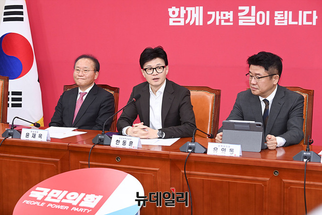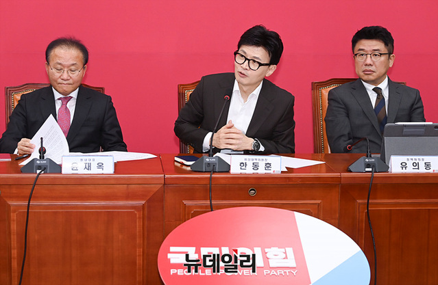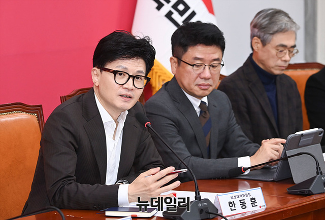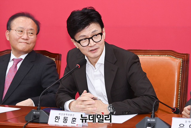 한동훈 국민의힘 비상대책위원장이 3일 오후 국회에서 열린 비상대책위원회의에서 발언하고 있다.
