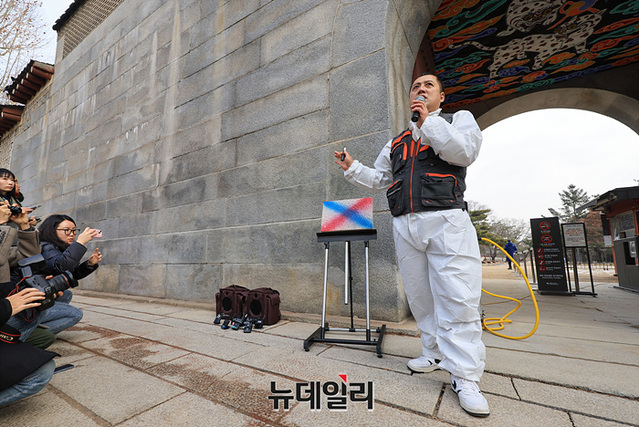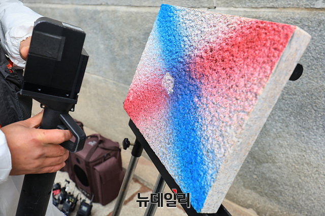 [포토] '경복궁 낙서' 제거과정 소개하는 국립문화재연구원
