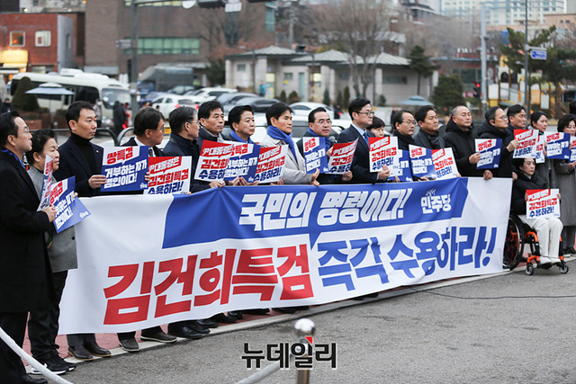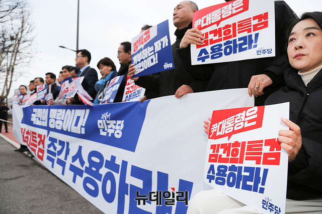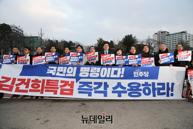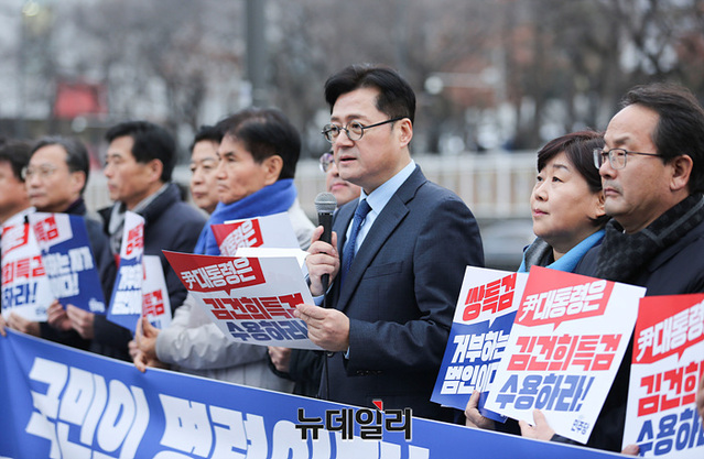 [포토] '쌍특검법' 수용 촉구하는 더불어민주당