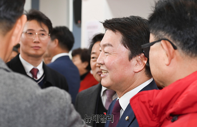 안철수 국민의힘 의원이 5일 오후 국민의힘 경기도당에서 열린 신년인사회에서 인사를 나누고 있다. (경기 수원=서성진 기자)
