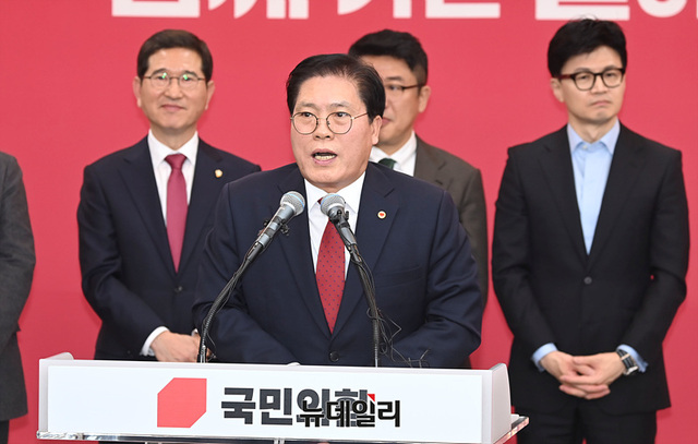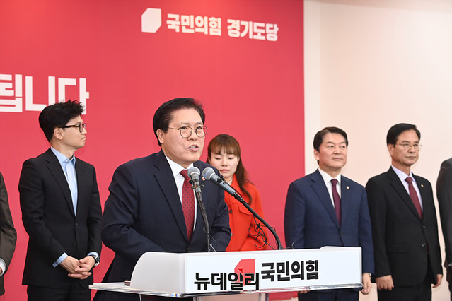 송석준 국민의힘 경기도당위원장이 5일 오후 국민의힘 경기도당에서 열린 신년인사회에서 신년사를 하고 있다. (경기 수원=서성진 기자)